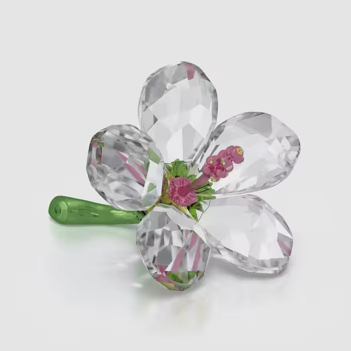 This small yet radiant Hibiscus flower perfectly captures the delicate beauty of nature. The design is crafted with 448 facets and features clear petals with a green metal stem and pink metal pistil. It’s a wondrous gift for someone special, or a tropical touch to your own home décor that will forever stay in bloom. Decoration object. Not a toy. Not suitable for children under 15.