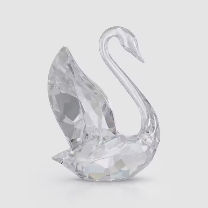 This small decoration piece is inspired by the new Swarovski Swan logo. Designed by Martin Zendron, it is crafted purely from clear crystal with 236 facets, with the Swan's head and neck shaped to form an elegant 'S' for Swarovski. Looking towards the future, with its wings lifted and ready for take-off, this graceful design celebrates the brand's unique craftsmanship and heritage in a modern and sophisticated way. Decoration object. Not a toy. Not suitable for children under 15.