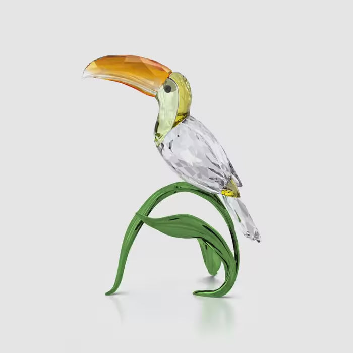 Capturing the distinctive and curious nature of a toucan, this beautiful creation combines soft colours with precision-cut expertise. The joyful scene has been crafted with 482 facets and displays the toucan in a calm and dignified pose, sitting atop a fold of glossy leaves in lacquered metal. It’s a perfectly playful way to get tropical with your home décor. Decoration object. Not a toy. Not suitable for children under 15.
